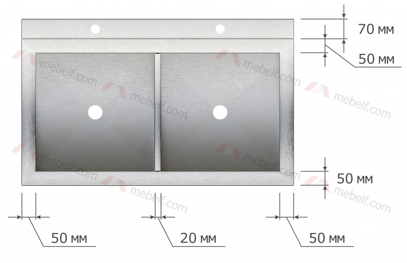 | Ванна моечная двухсекционная "Бизнес" ВМБ 1360/632 без борта |